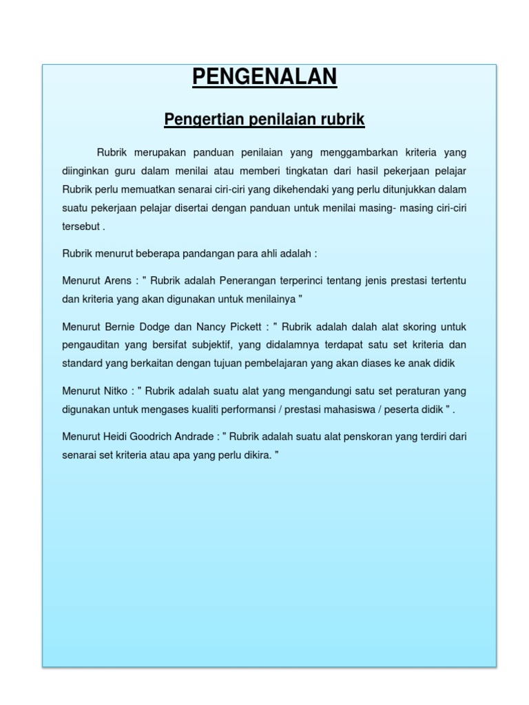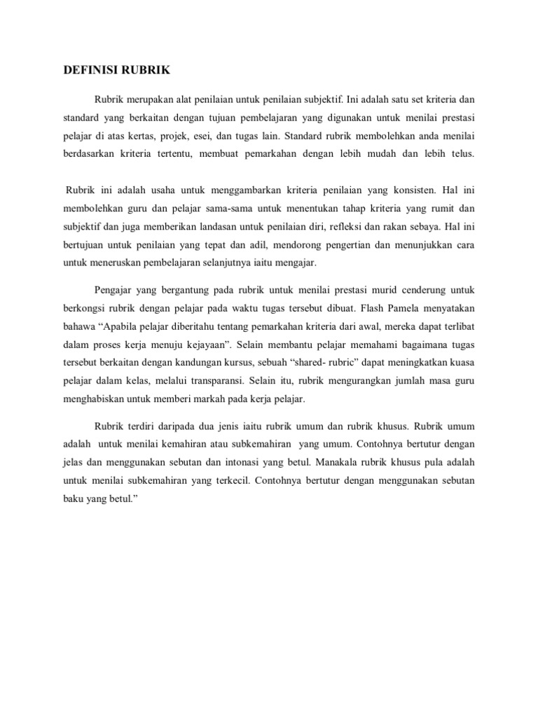 Maksud Penilaian Rubrik Dalam Pembelajaran
